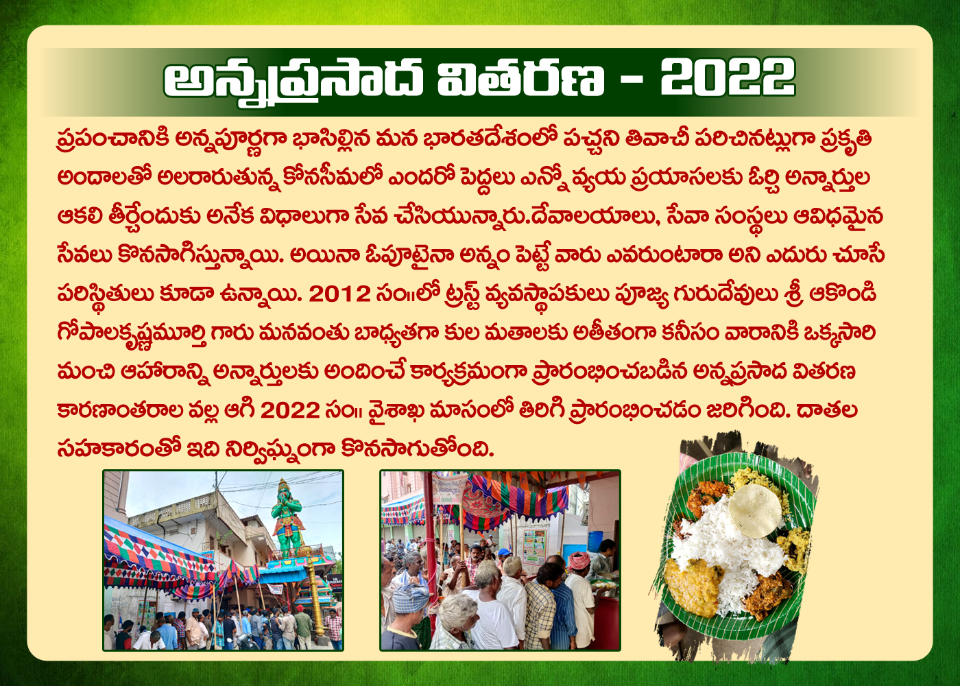 We are a team of Service Charity a wide range of services in the entire 2 Telugu States with our humble. We are working constantly to raise service to the needy.